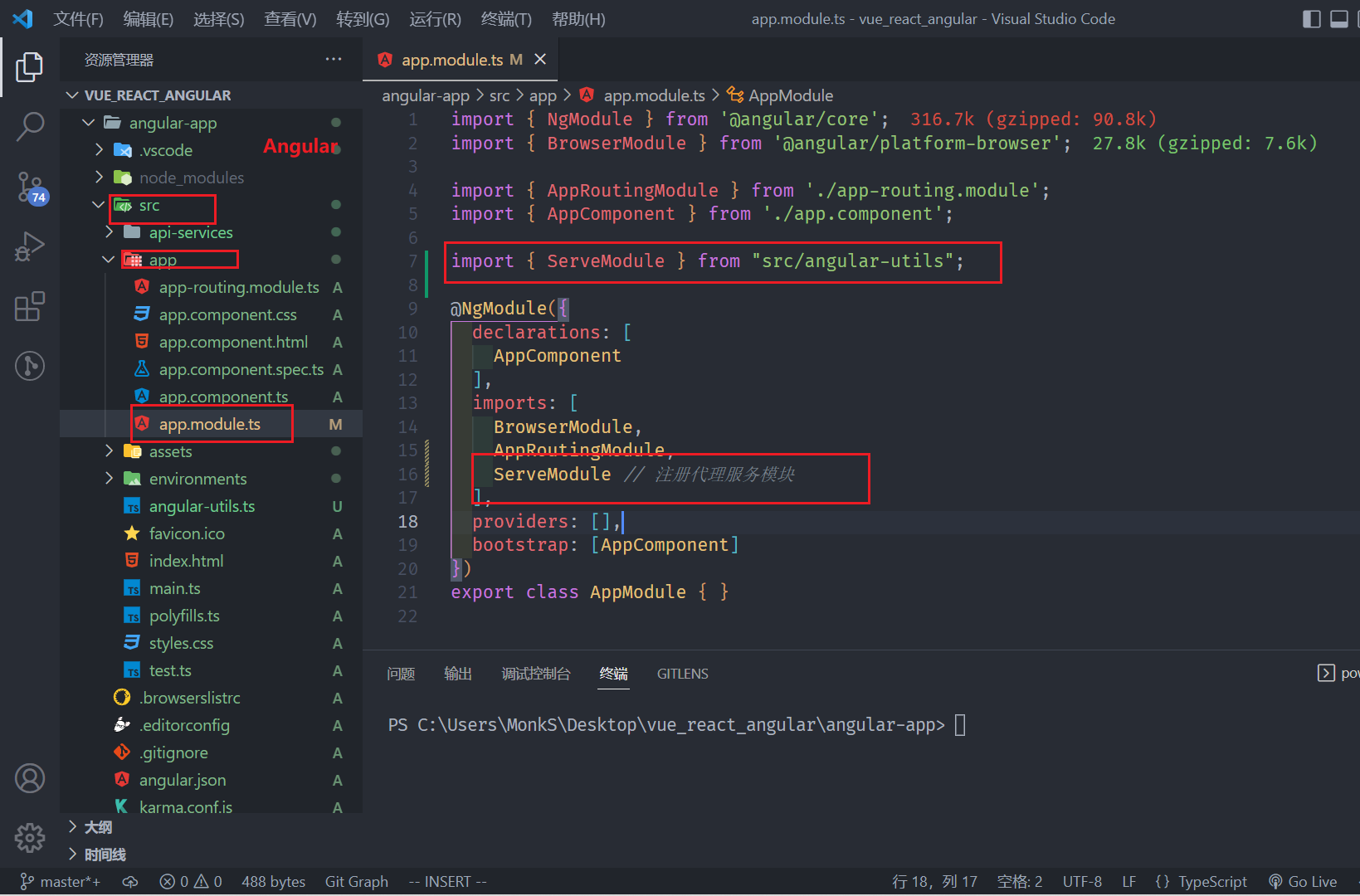 最后在 src/app/app.module.ts 中注册 ServeModule