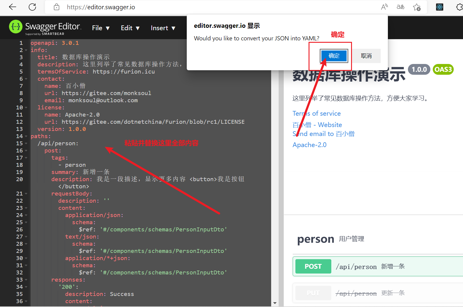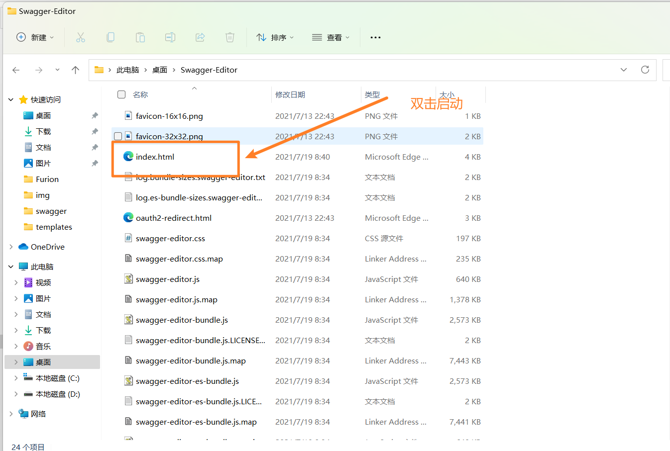 Furion 也提供了 Swagger-Editor.rar 离线包,可直接下载解压并双击 index.html 即可。