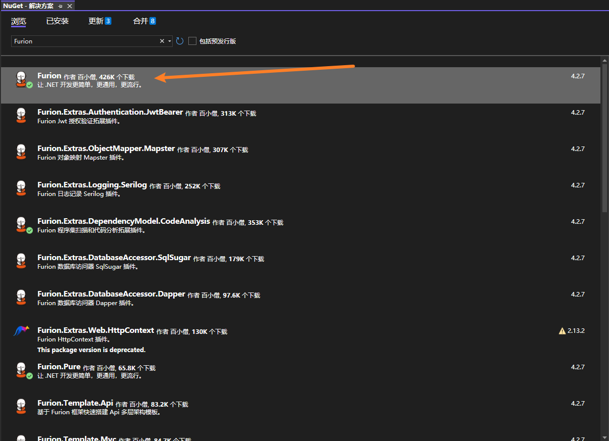Furion 官方提供了非常灵活方便的脚手架,可以快速的创建多层架构项目。