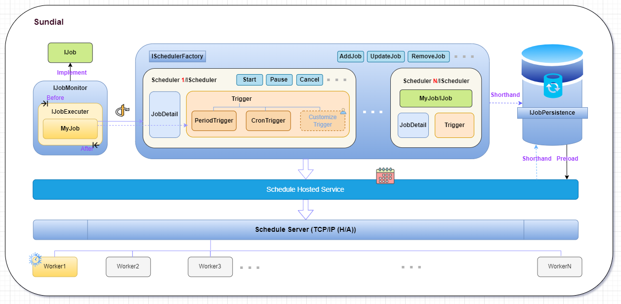Appended():标记作业触发器构建器是新增的,届时生成的SQL是INSERT语句Updated():标记作业触发器构建器已被更新,届时生成的SQL是Updated语句,如果标记为此操作,那么当前作业调度器初始化时将新增至内存中Removed():标记作业触发器构建器已被删除,届时生成的SQL是Deleted语句,如果标记为此操作,那么当前作业调度器初始化时将不会添加至作业计划中
