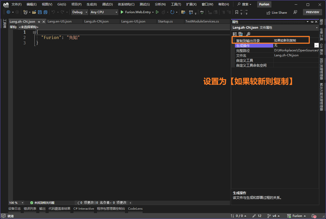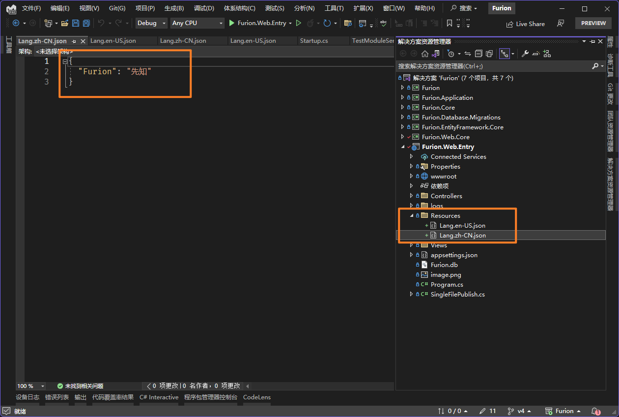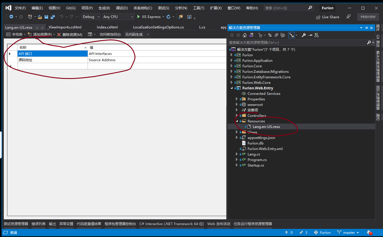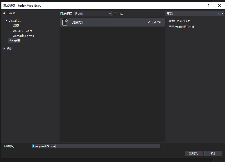 所以 Furion 提供了 SharedResource 模式,只需要创建一个 SharedResource.cs 类(可以任何名字)并添加对应的属性即可,如: