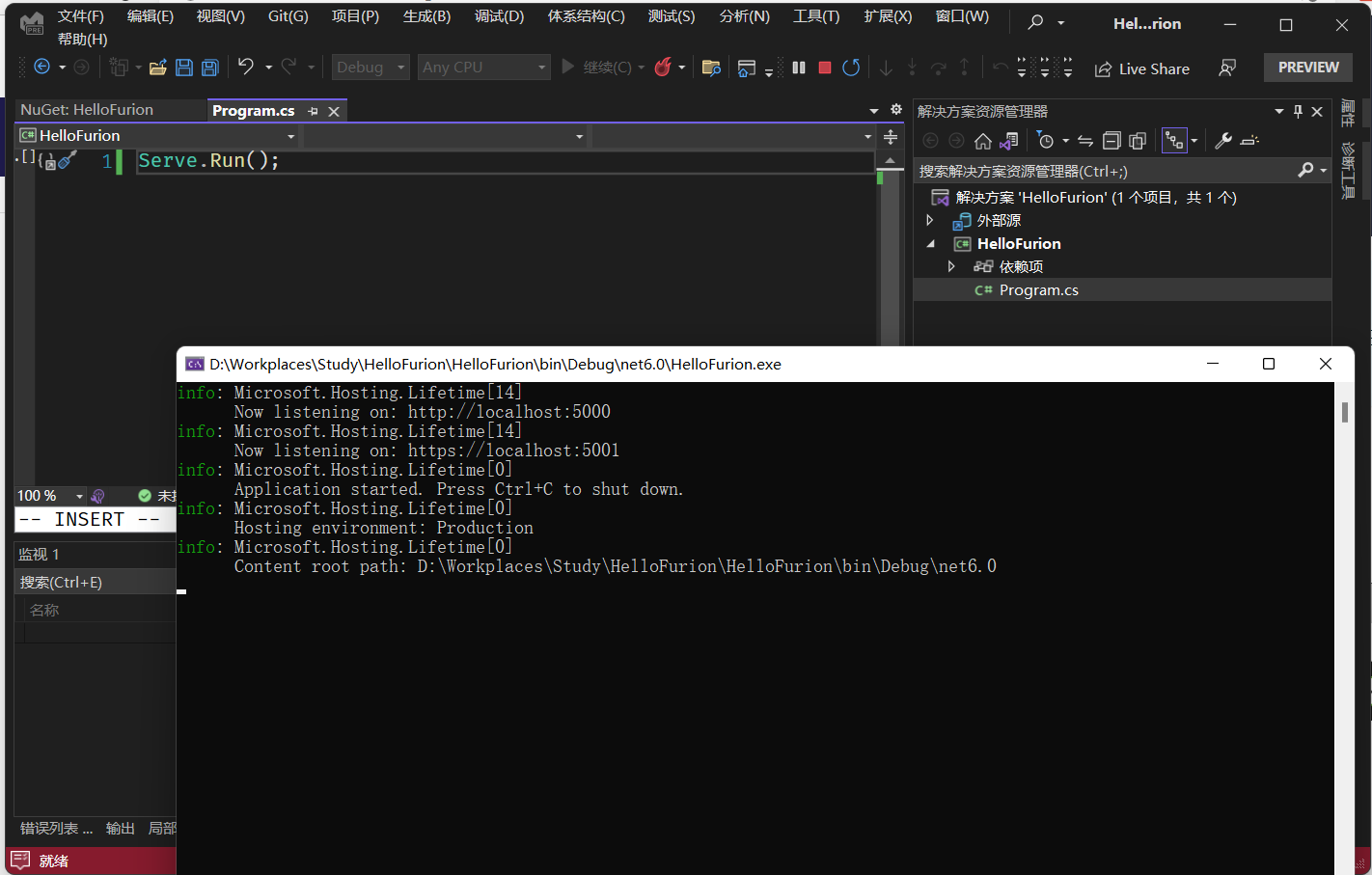 是不是非常强大啊,Serve.Run() 虽然简单,但是 100% 支持 Furion.NET 所有功能。尽情去体验吧!