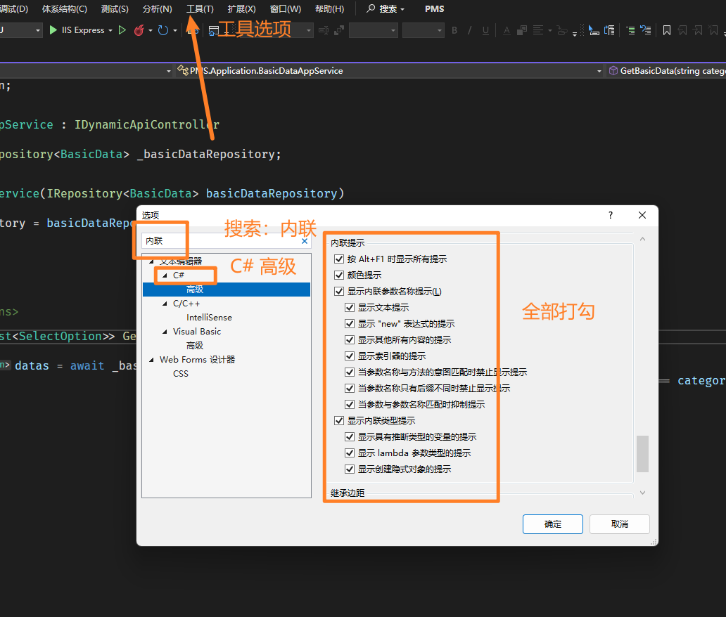 Visual Studio 提供了非常多代码辅助功能,启用这些功能将大大提高开发效率,这里列举一些常见的配置,后续不断完善。